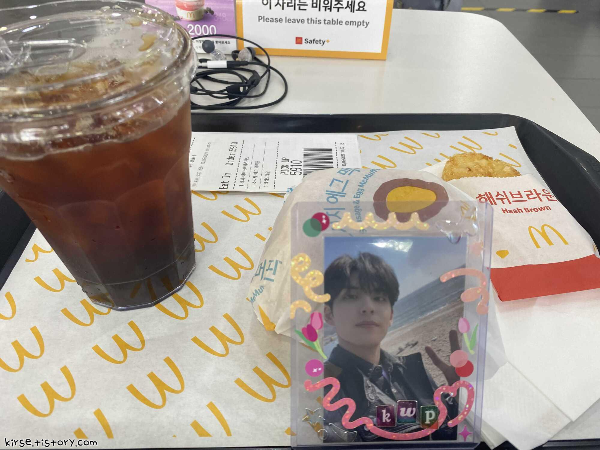 이상하게 먹기 어려운 맥모닝을 드디어 오랜만에! 먹었다. 소시지 에그 맥머핀 세트, 음료는 아이스 아메리카노.